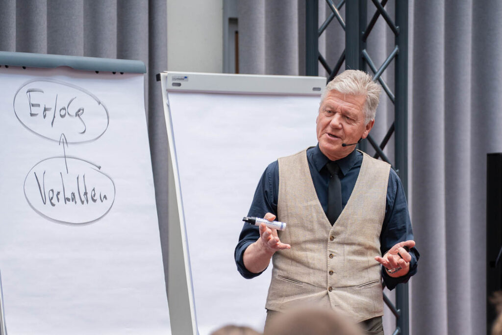 Wir lebten nicht in einer Leistungsgesellschaft, sondern in einer Erfolgsgesellschaft. Das sei ein Unterschied. Dazu gab Reinhard Sprenger direkt zu Beginn den entscheidenden Hinweis: Motivation kommt von innen, Motivierung von außen. Und wer ständig auf äußere Impulse warte, gäbe Verantwortung ab. Mit der Definition von Wahlfreiheit legte er den Teilnehmern konkretes Werkzeug in die Hand, denn sie bedeute: